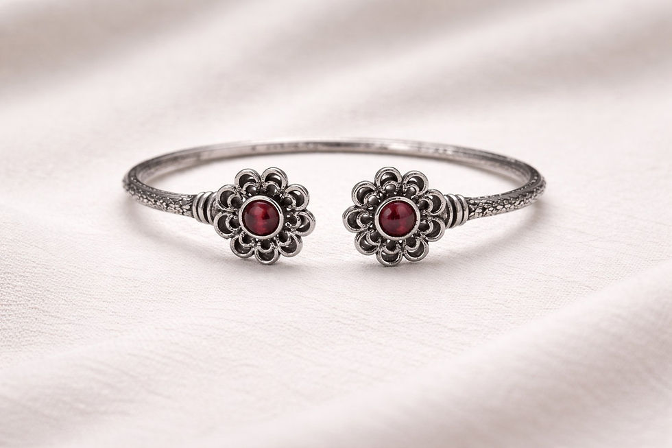 athizay Women Oxidised Silver Floral Cuff Bracelet grey Stone Call:8860010199