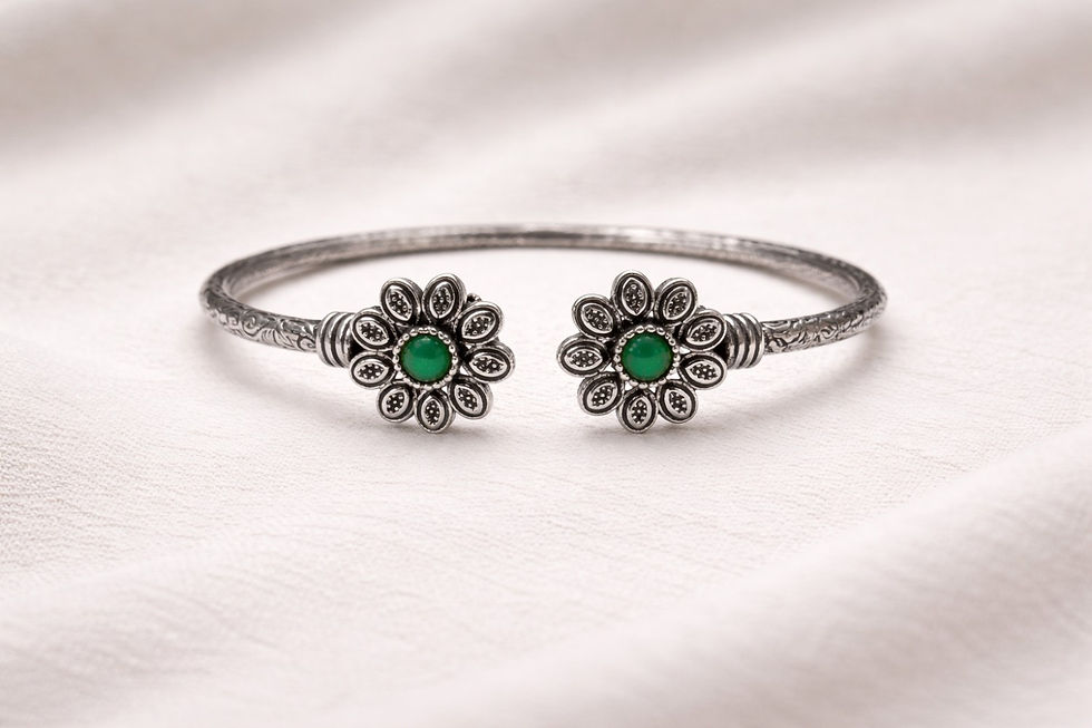 athizay Women Oxidised Silver Floral Cuff Bracelet Green Stone Call: 8860010199
