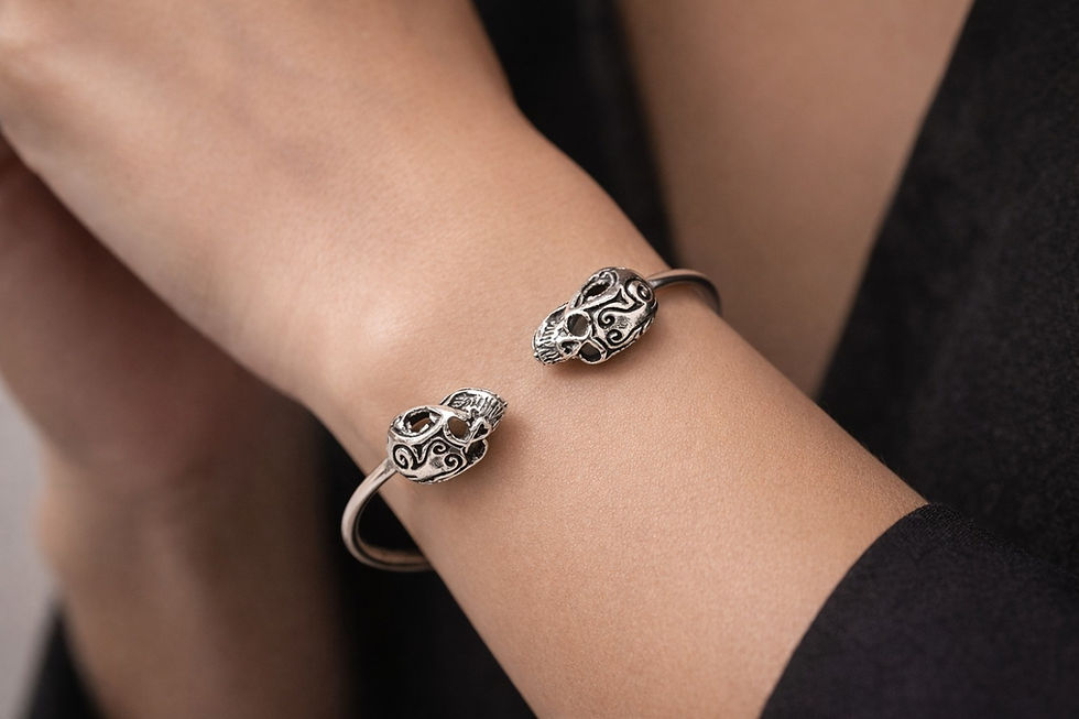 athizay Women Oxidised Silver Open Cuff Bracelet Gothic-inspired Call:8860010199